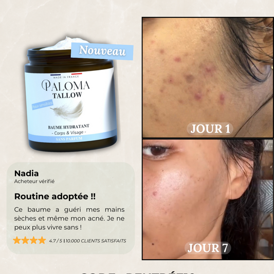Après 3 mois d'utilisation, mes rougeurs ont disparu, ma peau est éclatante et nourrie en profondeur.